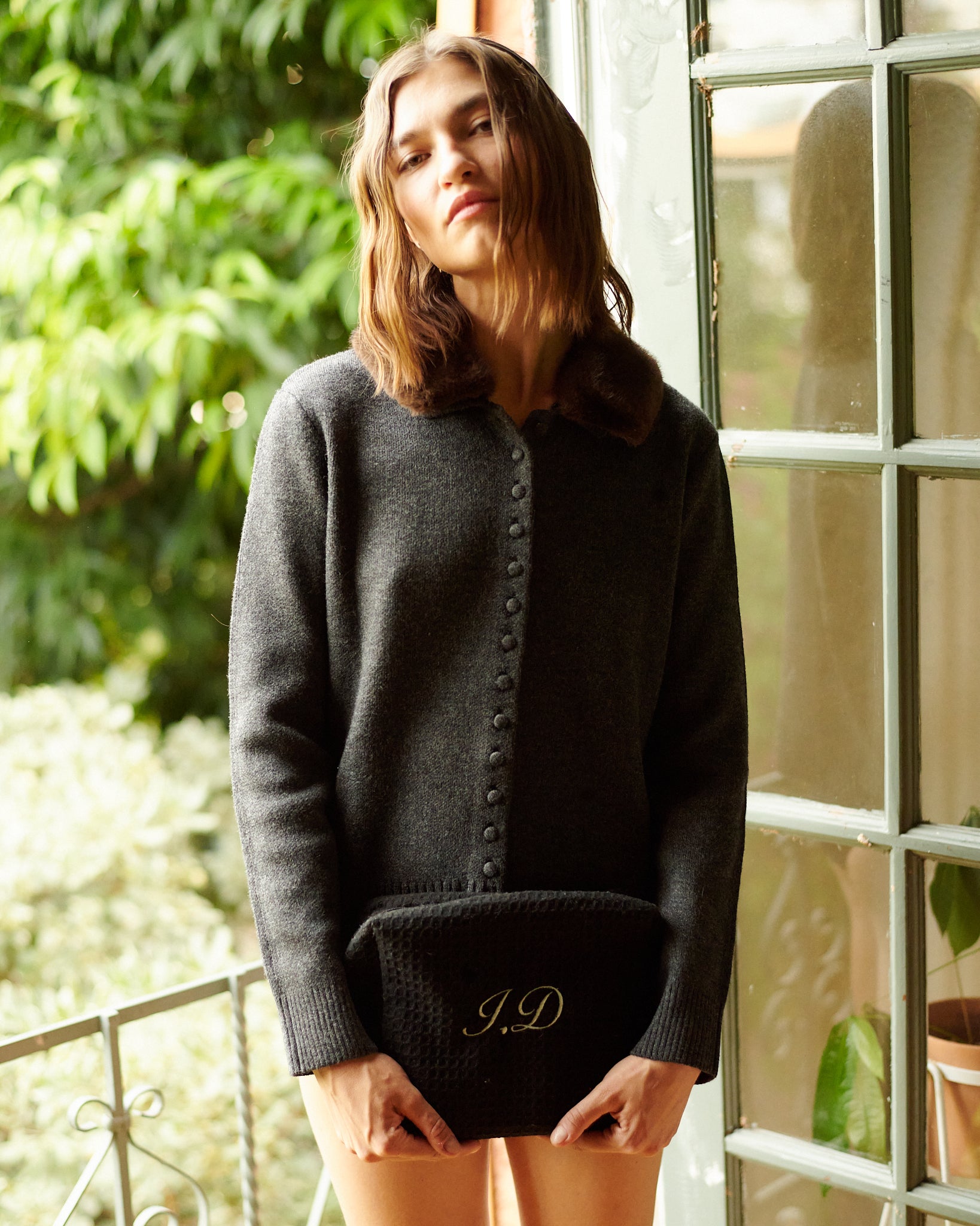 This quilted cotton pouch is fully customizable—embroider initials, a name, or a flirty phrase in the font and color of your choice. Made from soft white cotton with a delicate waffle texture and finished with a cotton handle for easy carrying, it’s the perfect travel companion, bridesmaid gift, or everyday glam bag. Compact yet roomy enough for skincare, makeup, or daily essentials.