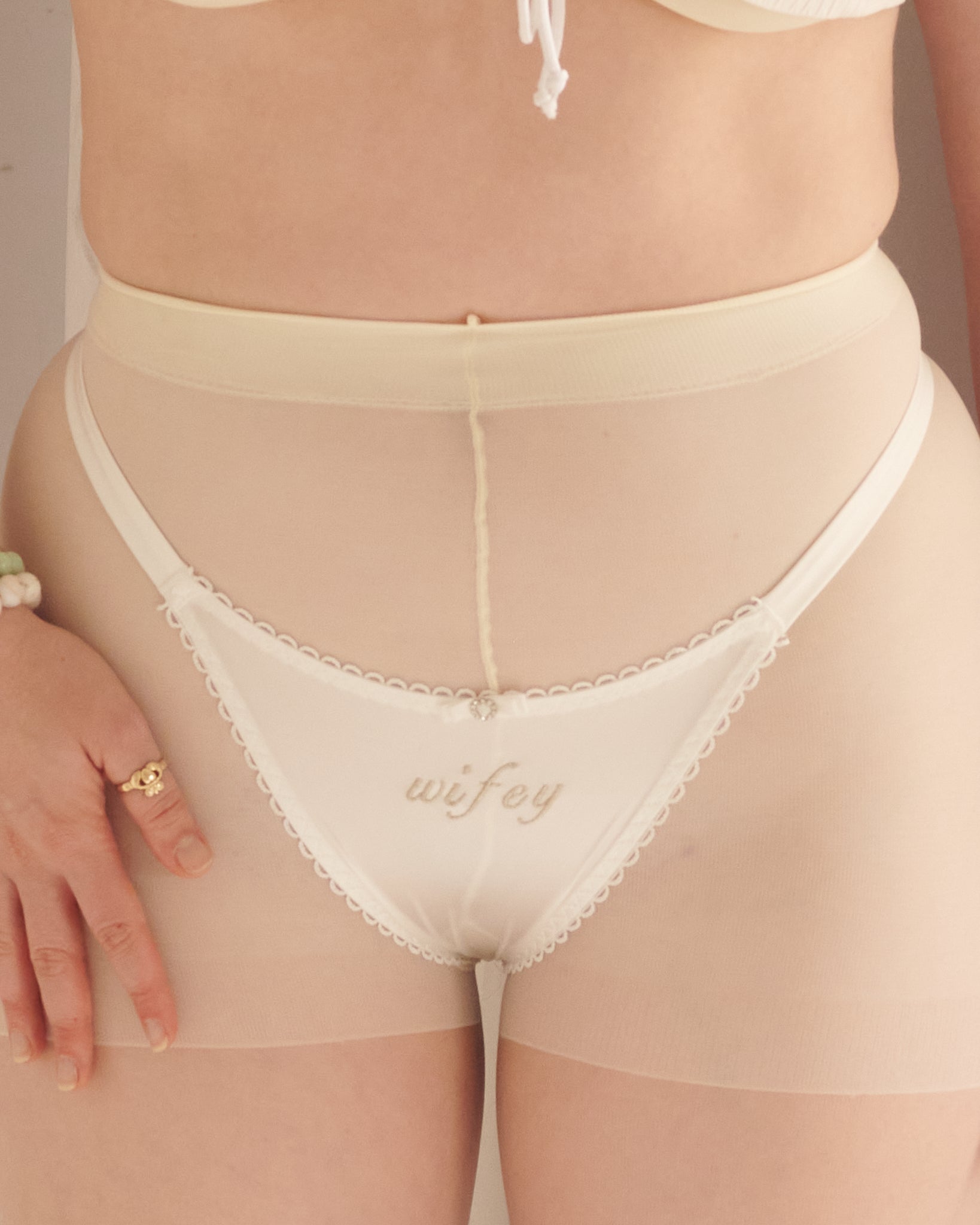 The cheekiest way to say “just married.” This satin thong is embroidered with wifey in silver thread — the ultimate bridal must-have for your honeymoon suitcase, wedding night, or just because. A fun, flirty, girly little gift from you to yours truly.