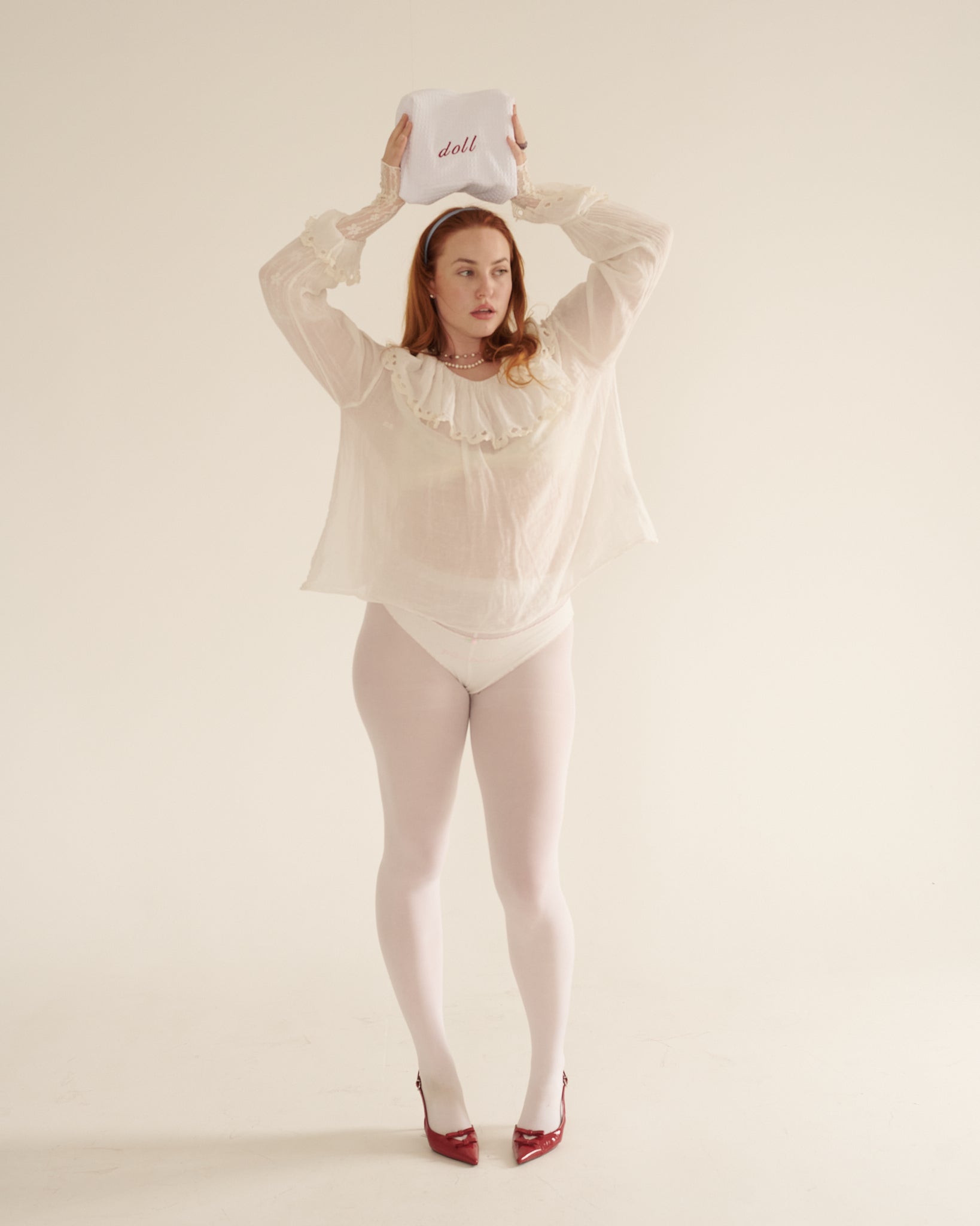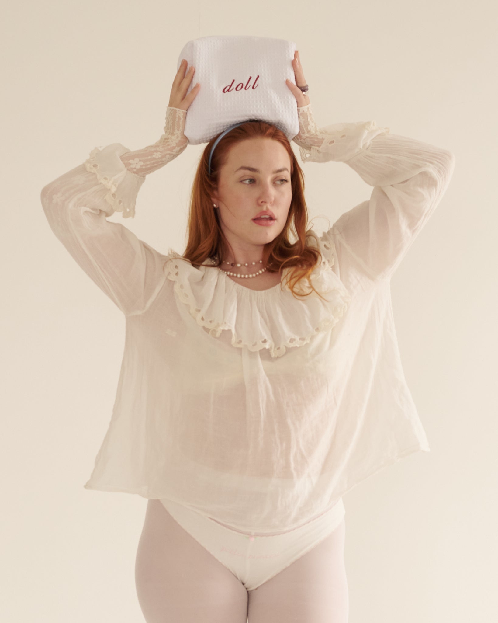 A soft cotton waffle weave with a padded exterior, zippered closure, and interior pocket to keep things organized. Finished with a cotton handle for easy carrying. Embroidered with “Doll” in soft blush for the ultimate powder-room moment. Compact but roomy enough for your daily essentials.